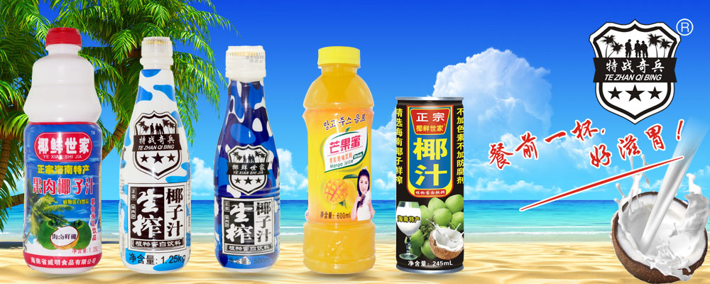 海南省威明食品有限公司成立于2013年,公司坐落于海南椰子之鄉海南省海口市,是集以海南椰子的深加工、研發、生產、銷售于一體的生榨椰子汁飲料生產企業。我們公司有“椰鮮世家”椰子汁、“椰鮮世家”生榨椰子汁和“特戰奇兵”生榨椰子汁等等的海南椰子汁讓您喝出健康、喝出美麗。